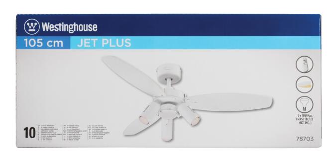 - Light kit uses three E14 base 40 watt light bulbs (not included). We recommend Westinghouse LED light bulbs to enhance the overall efficiency of this ceiling fan