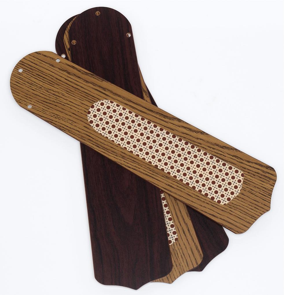 - Four reversible blades in oak with rattan and mahogany, both patterns included