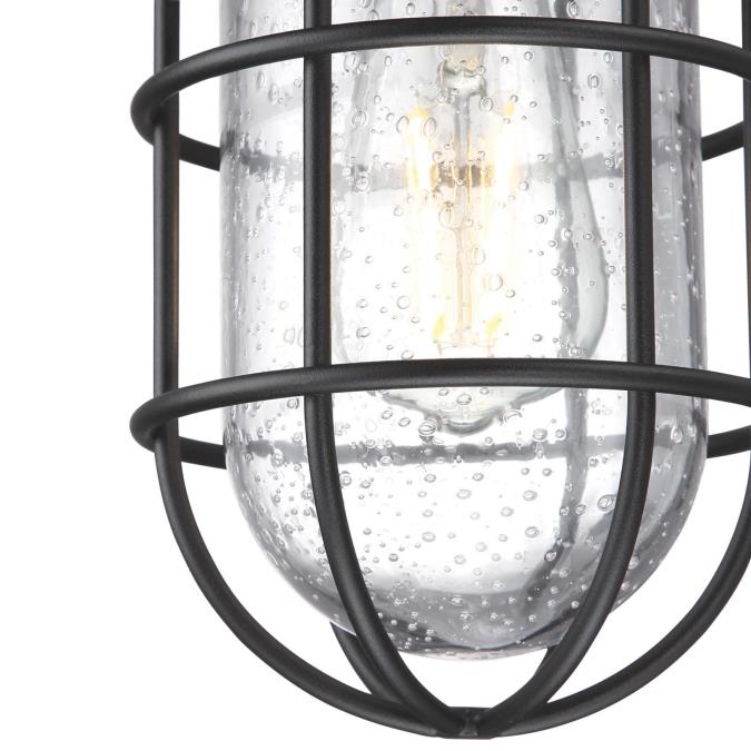 - Clear seeded hand-blown glass adds to the appeal of this industrial-style light and provides a warm, welcoming glow